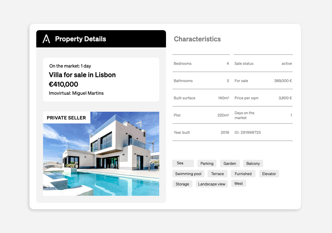 Η CASAFARI είναι η πρωτοποριακή, πιο καθαρή και μεγαλύτερη βάση δεδομένων ακινήτων στην Ευρώπη, με δεδομένα από περισσότερες από 20 χώρες στην Ευρώπη και τα ΗΑΕ — με την υποστήριξη προηγμένης τεχνητής νοημοσύνης.